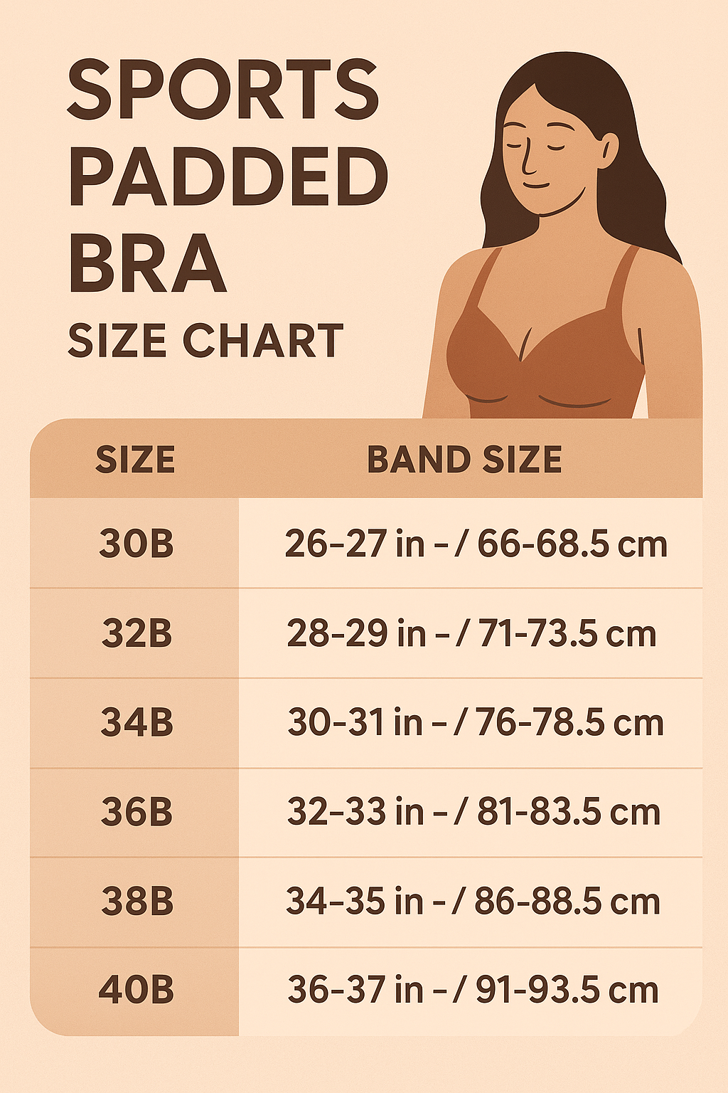 | Size | Underbust Size (cms) | Overbust Size (cms) | Bra Size |