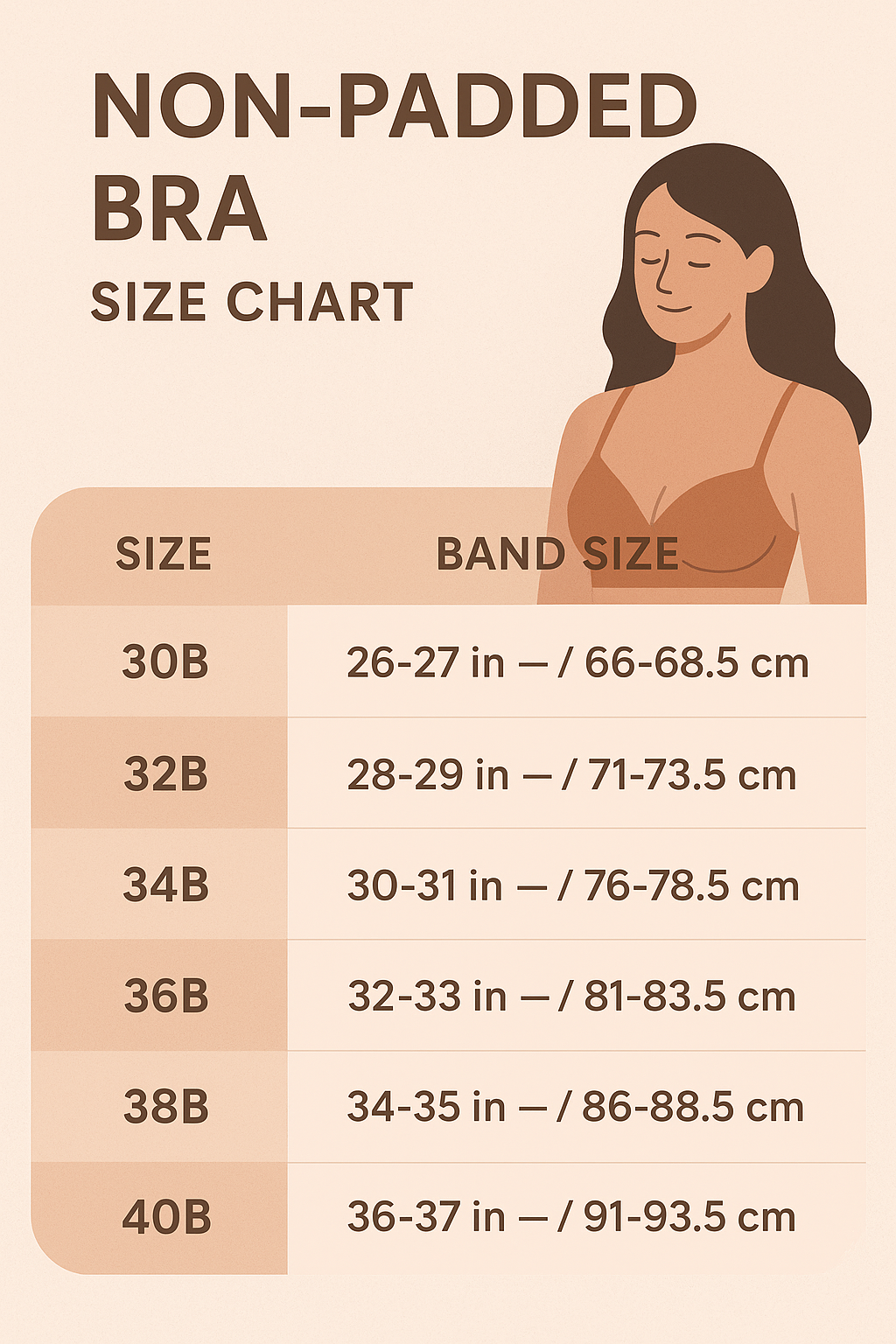 | Size | Underbust Size (cms) | Overbust Size (cms) | Bra Size |