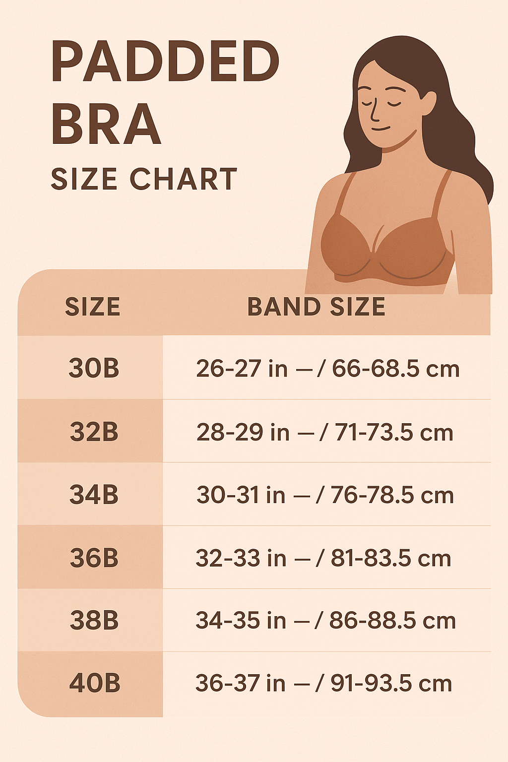 | Size | Underbust Size (cms) | Overbust Size (cms) | Bra Size |